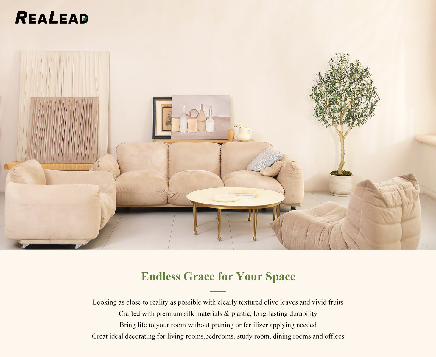 Realead artificial olive tree is built with premium UV-resistant materials to stand up to strong, direct sunlight—both indoors and outdoors. No more worrying about faded, brittle, or discolored leaves from hours of sun exposure on your patio, balcony, entryway, or sunlit living room. you can enjoy timeless greenery indoors or outside without constant replacements. True durability meets effortless beauty